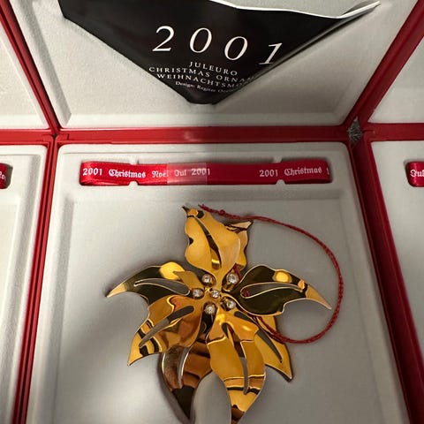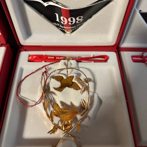 Georg Jensen Christmas Classics juleophæng i guldfarvet metal til jul. Julepynten leveres i æsker, som på billederne, med røde bånd med årstal. Velegnet som ophæng på juletræ, grene eller andre juledekorationer i hjemmet. Klassiske motivophæng fra Georg Jensens julekollektion