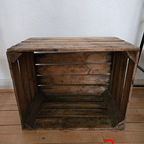 Trækiste opbevaringsbænk i hvidmalet træ. Bænken har låg, der kan åbnes opad, og indvendigt opbevaringsrum i naturtræ. Velegnet som opbevaringsmøbel i fx entré, stue eller på altan/terrasse, hvor der er behov for ekstra plads til ting som tekstiler, puder eller andre genstande. Trænger til lidt maling.