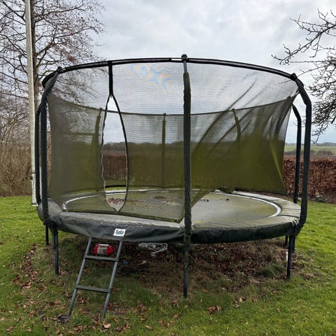 Exit toys jumparena trampolin gives gratis væk, den ser ud som på billederne ingen huller i den, men mangler kantpude og net. Dette kan tilkøbes. Man hopper godt i den. 427Ø
