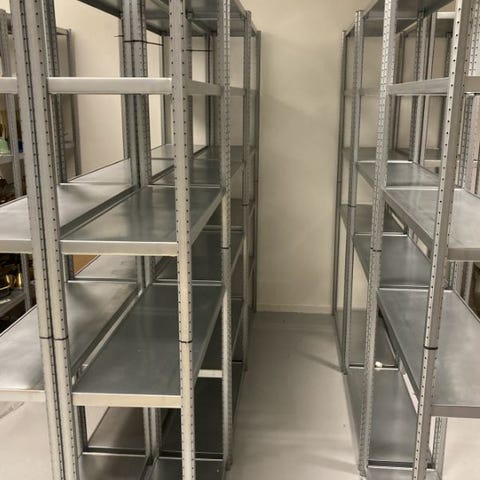 Helt nye stålreoler fra Jem og Fix. 2stk - sælges samlet. Den ene er åbnet, den anden i emballage. Se mål på billede.