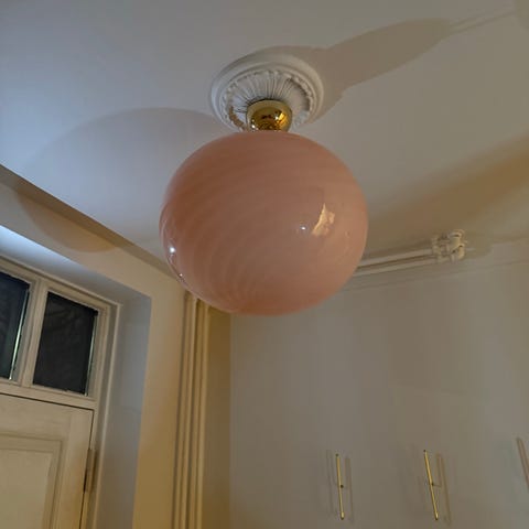 Oval loftslampe D35 i murano glas. Købt hos Mille Fiori interior på Østerbro. Ingen spor i glasset. Fremstår i rigtig god stand.