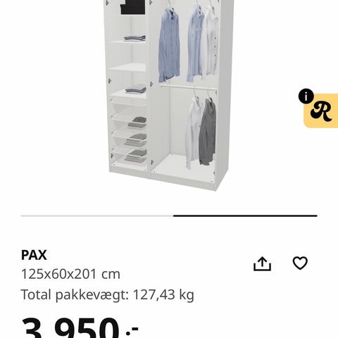 Ikea pax-skabe sælges.