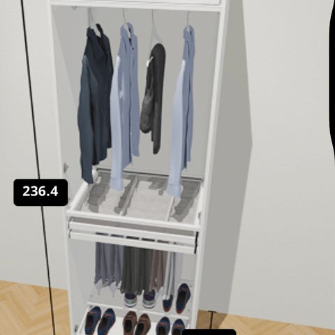 Indeholder: 10 skuffer, et bøjlestativ og 5 hylder