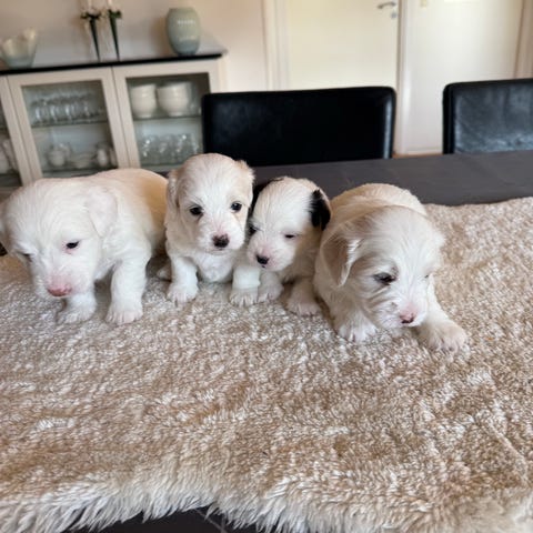 Deres mor er en sød og kærlig puddel på ca. 2,5 kg. Faren er en Pooton (halv Coton de Tulear / halv puddel) på ca. 3 kg. Vi forventer derfor, at drengene som voksne vil veje omkring 3 kg.