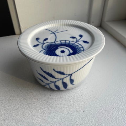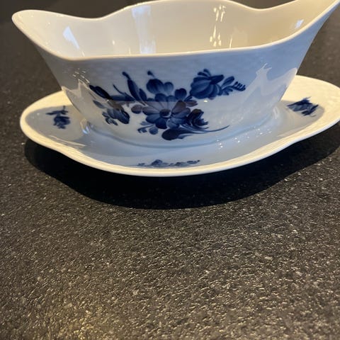 Royal Copenhagen sovseskål med underfad porcelæn blå/hvid