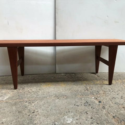 Bænk i massiv oliebehandlet teaktræ,med hexagonale ben.