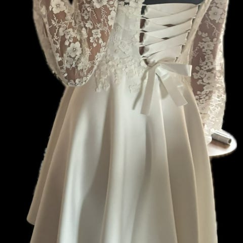 Smuk konfirmationskjole fra Brudedesign. Brugt en enkelt gang sidste år. Størrelsen er 40 men kan justeres til ca 38 bagpå via bindebåndene. Ny pris 3.500,-