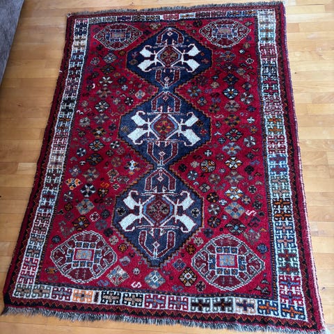 Tæppet fremstår generelt meget flot og velholdt. Har været opbevaret og kommer fra ikke-ryger hjem.