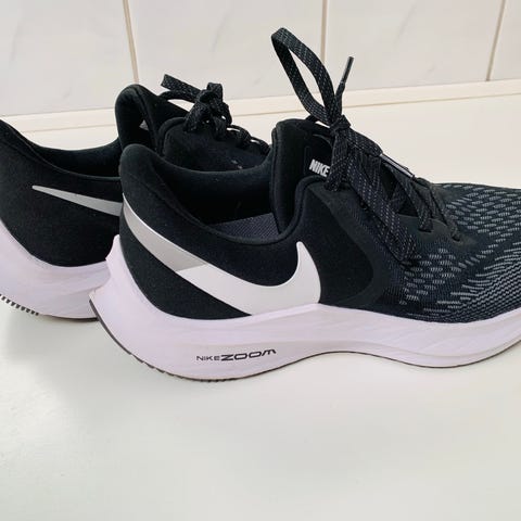 Nike løbesko i størrelse 45. Skoen er sort med lys mellemsål og snørelukning. Overdelen fremstår som en kombination af mesh og syntetiske materialer, der giver åndbarhed og støtte ved løb. Velegnet til løb og anden træning, hvor der ønskes en neutral løbesko i denne størrelse.