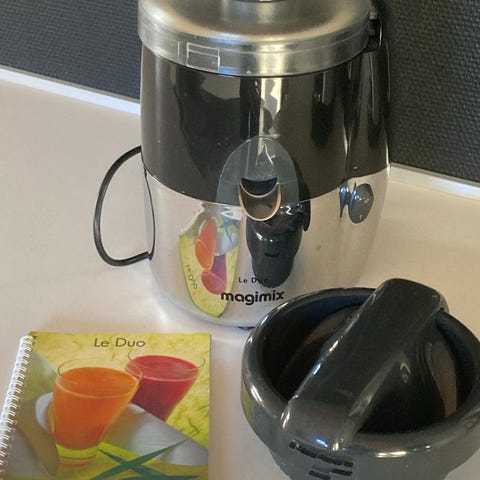 Fungerer som juicer, citruspresser og purépresser samt med skiver til at snitte/skære grønt.