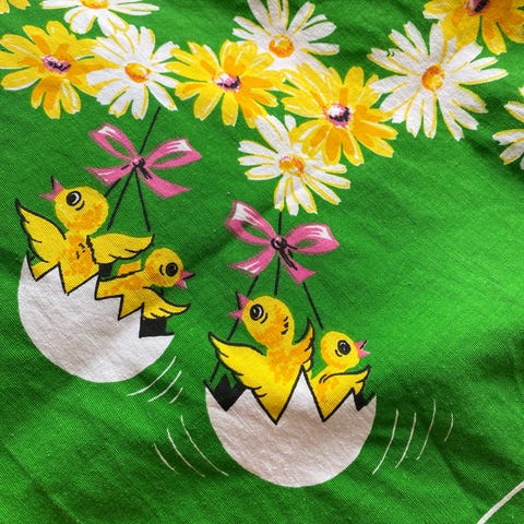 Påske duge og dækkeservietter fra de gode gamle dage. Forestil dig familien i kolonihavehuset, campingvognen eller hjemme, hvis vejret var flot, evt. omkring havebordet Sild og snaps, og ungerne ledte efter påskeharereder...🐣🐥🐇