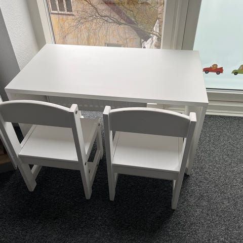Bord og to stole til de mindstes børneværelse