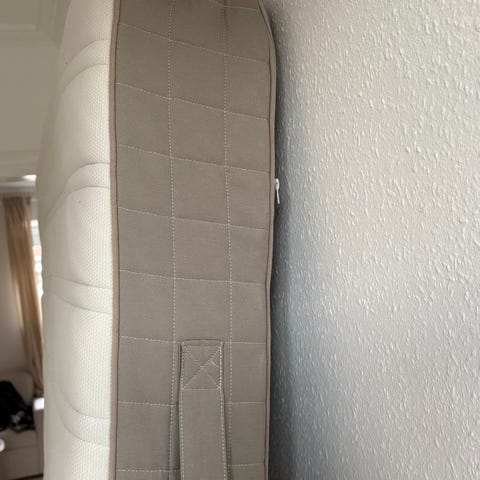 IKEA seng med madras i lys farve. Sengen har en enkel, rektangulær sengeramme med hovedgavl og en madras i standard dobbeltstørrelse. Designet er minimalistisk og neutralt, hvilket gør den egnet til soveværelser med enkel indretning. Rammen fremstår i en lys nuance, der passer til lyse trægulve og lyse vægge.