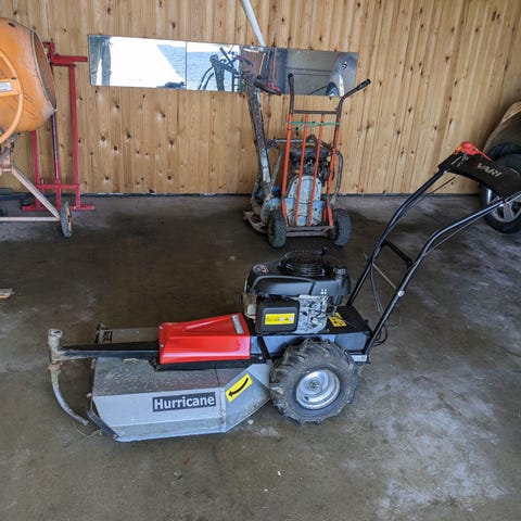 Toro 1000 cylinderplæneklipper med benzinmotor. Plæneklipperen er en walk-behind model med cylinderknivsystem. Maskinen har rød hovedramme og håndtag med betjeningsgreb til fremdrift og klipning. Starter og kører. Skal nok ha’ justering og kosmetisk facelift.