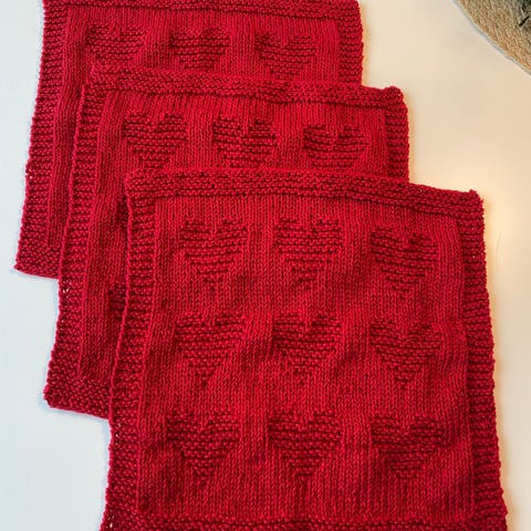 3 hjemmestrikkede karklude i patent strik. 24x26 cm. 100% bomuld. Sælges samlet