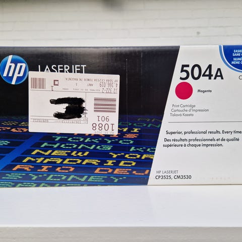 Jeg har to styks. Helt nye, den ene er åbnet, men det er inderposen ikke. Den anden er uåbnet. Jeg har også farvepatroner i 504A serien.