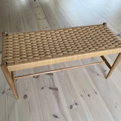 Bænk i massivt egetræ med naturligt fletsæde.