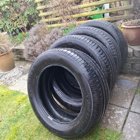 4stk sommer dæk brugt men kan køre hva jeg mener 2 seasoner endnu , 2 af dækkende har 90 % mønster de andre 2 her hvad jeg mener 60 70 % ,