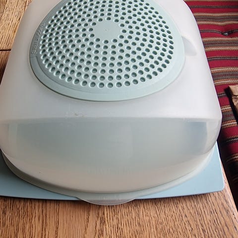 Sælger denne klassiske og velholdte Tupperware ostecloche i de ikoniske lyse farver. Perfekt til opbevaring af ost, så den holder sig frisk længere, takket være det smarte ventilationssystem.