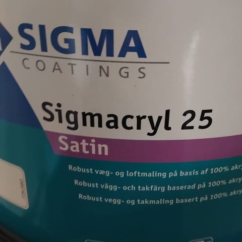 har 7 liter, mat robust glans 5 vægmaling. Mountain sky. Fik købt alt for meget og har ikke plads derfor meget resten billigt