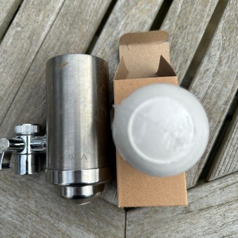 Vandfilter, Vandfilter med kul til vandhane i ex køkken. Jeg har lige købt 2 stk, og de passer til normalt armatur, måske en enkelt pakning, måske fra den gamle vandhane kan bruges. Min vandhane er speciel, og den passede ikke, men tog chancen. Derfor er den ene taget ud af pakken. Jeg har givet kr. 107,- for de 2, den i emballage sælger jeg for kr. 25,-