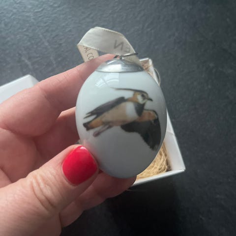 Påskeæg af kongelig porcelæn fra Forårskollektionen år 2014, med motiv af svaler og vibe.
