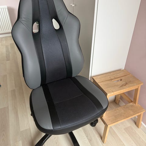 Sælger denne lækre kun 1 år gamle gamer/ kontorstol som står i super god stand. I håb om en anden vil blive lige så glad eller gladere for den end jeg.