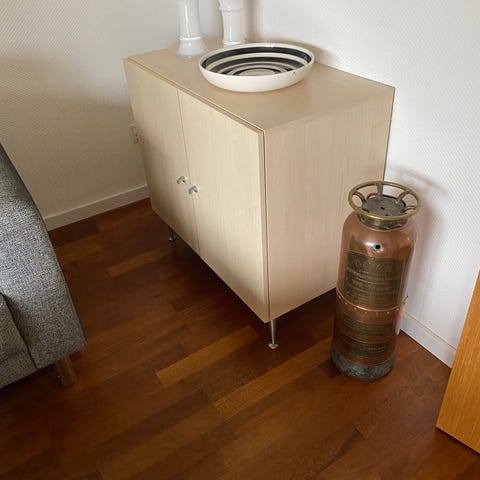 Skabet har en simpel, elegant form med lakeret overflade og lodrette paneler. Træmaterialet giver varme.,Bemærk at mail, chat og beskeder ikke besvares, og varen skal købes på knappen "Gå til varen"