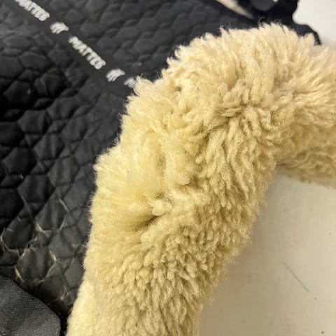 Mattes lammeskind underlag i sort. Underlaget har quiltet overflade og kant samt underside i lammeskind for ekstra komfort til hesten. Velegnet til brug under sadel ved ridning for at give stødabsorbering og fordeling af tryk på hestens ryg.