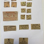 Produktet består af flere små rationeringsmærker, der indeholder information om gyldighed og vægt. Designet er vintage, med trykte nummererede sekvenser og tekst i sort og brunt. Materialet er papir, der viser tegn på slid og alder.,Bemærk at mail, chat og beskeder ikke besvares, og varen skal købes på knappen "Gå til varen"