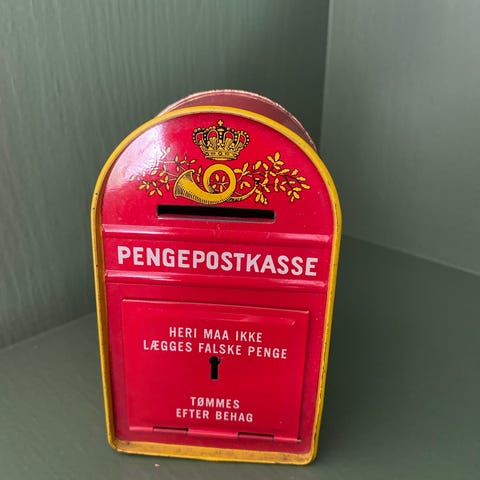 Rød telefonboks sparebøsse i metal