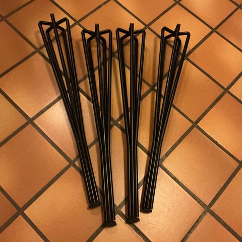 Bordben sæt i sort. Består af to separate benrammer, hver med to lige ben og en rektangulær topplade med forborede huller til montering af bordplade. Velegnet som understel til bordplade eller som støtteben til arbejdsbord eller konsolbord. Materiale fremstår af en form for stål.