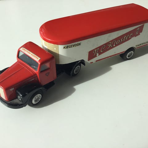 Tekno lastbil med anhænger model N.C. Kloster rød hvid