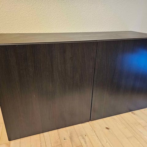 Hvid BESTÅ IKEA reol med låger. Enkel reol, kun synligt brugsspor indvendigt.
