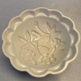 Design: Bølget kant med blomstermotiver i bunden.