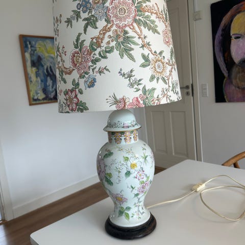 Retro bordlampe med flot fod med blomster