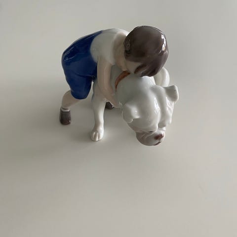 Porcelænsfigur forestillende en dreng, der spiller på harmonika. Figuren står på en rund fod og er dekoreret i flere farver, blandt andet grøn jakke, brune sko og gul harmonika. Egnet som pyntegenstand i reol, vitrineskab eller på hylde. Figuren fremstår som klassisk dekorationsfigur i porcelæn/keramik.