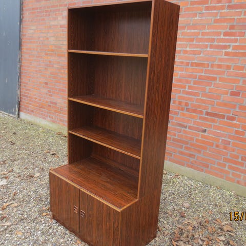 Palisander reol med underskab. I palisander. Har nogle huller i bagpladen og andet slitage. Derfor kun 500kr