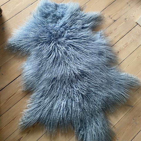 Smukt og blødt tibetansk lammeskind i en elegant lys blågrå nuance. Skindet har de karakteristiske lange, krøllede fibre, som giver et let og eksklusivt udtryk.