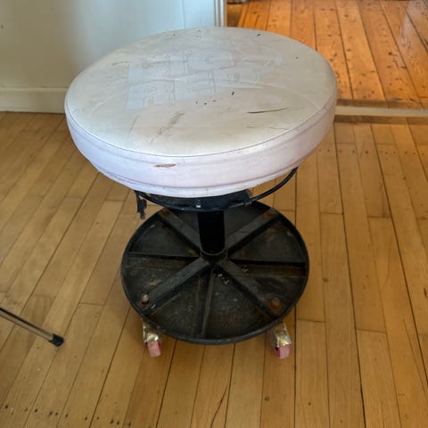 Fin og bundsolid værkstedsstol er blevet i overskud. ca 30cm høj.