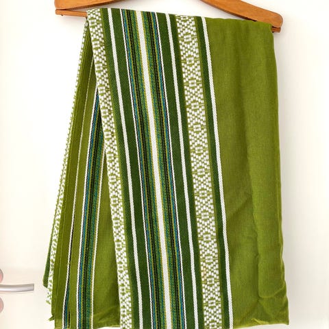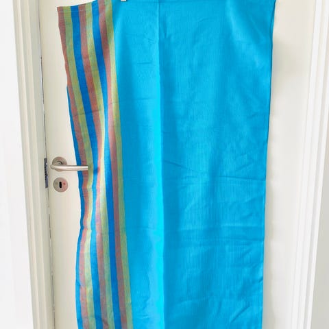 Gør dit bord (eller din grĂŚsplĂŚne!) klar til forĂĽret med denne fantastiske vintage-perle! Farverne er helt unikke â en strĂĽlende blĂĽ blandet med turkis og grønne striber, der emmer af 60âer/70âer charme og ĂŚgte god energi. Dugen er et must-have til dig, der elsker Mid-Century Modern (MCM) stilen eller leder efter den perfekte opgradering til sommerhuset.