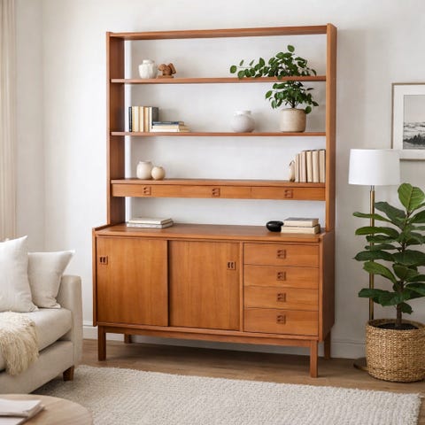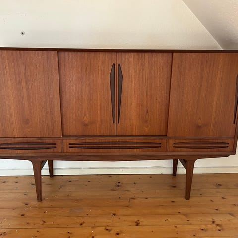 Et klassisk mid-century dansk design, der passer godt i stue eller spisestue og giver både opbevaring og udstilling.