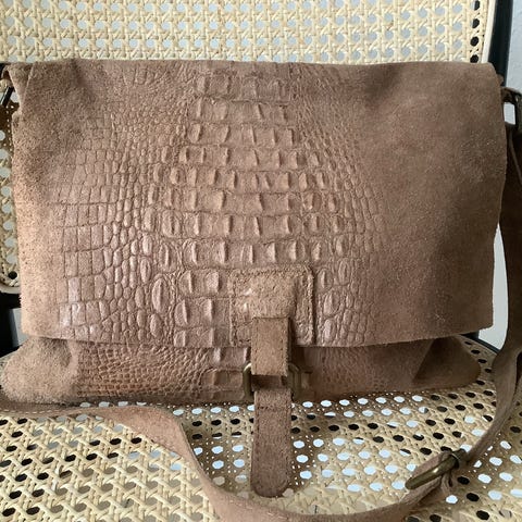 NY Skuldertaske i ruskind, sort. Den har aldrig været i brug og har mål ca 42x21x10.