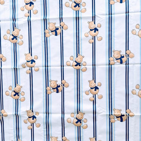 Stofstykke med lilla bundfarve og gentaget mønster af små dukker. Måler ca. 45 x 65 cm. Egnet til mindre syprojekter som patchwork, applikationer, pynt eller andre kreative tekstilprojekter.