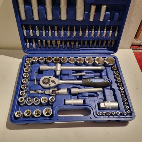 Elora topnøglesæt i metalkasse. Sættet indeholder en række toppe samt skraldenøgle og forlængere, samlet i en blå metalæske med hængslet låg. Velegnet til generelt mekanisk arbejde, hvor der er behov for forskellige topnøglestørrelser samlet ét sted. 10-22 mm Top kvalitet sæt