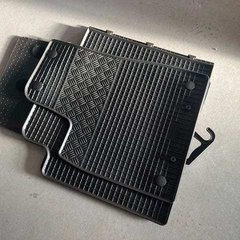 Tesla bløde gummimåtter i sort. Sættet består af flere måtter i forskellige former og størrelser, beregnet til at dække både for- og bagsædeområder i bilen. Måtterne er fremstillet i slidstærkt gummimateriale med mønster, der hjælper med at holde snavs og væske på plads. Velegnet til generel brug, hvor der ønskes let rengøring og ekstra beskyttelse af bilens interiør.
