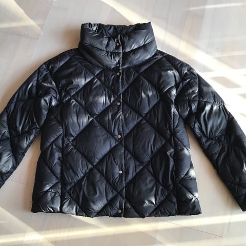 Sort dunjakke med quiltet mønstre med assymatrisk lynlå, lås ind i og lommer i S fra mango
