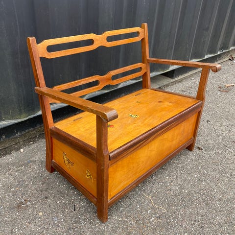 Fin børne bænk. Med slitage og en bund der godt kunne laves anderledes.