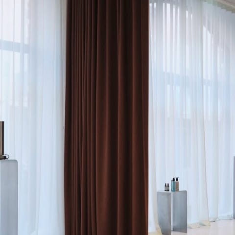 Fine lette gardiner fra Arne Aksel. De er monteret med multibånd, så lette at hænge op. Der er 2 stk og de er hver 2,53 m i højden og 2,80 i bredden(når de er strakt ud)