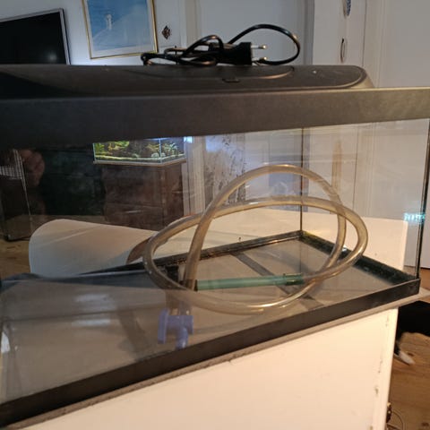 Der er Eheim pumpe med, trænger dog til et nyt filter og sugekopper